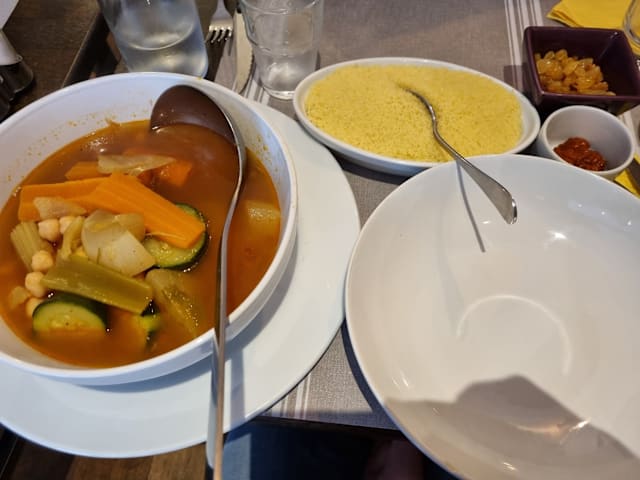 10/10Friendly service, delicious food. Just beware, the vegetable couscous is not vegetarian. Would go back to this restaurant any time. The tagine was fantastic!