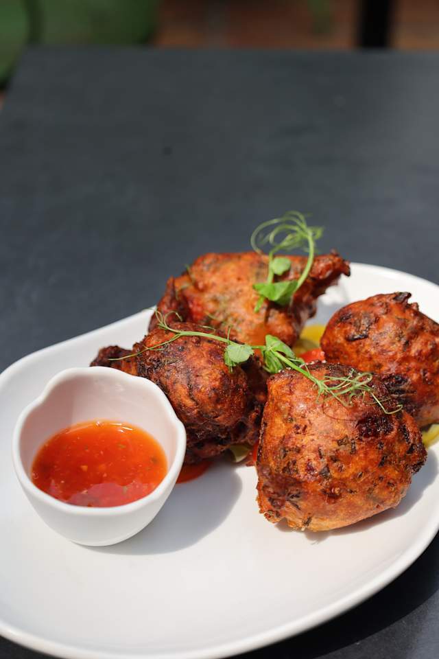 - Accras de morue sauce sweet chilli, poivrons grillés