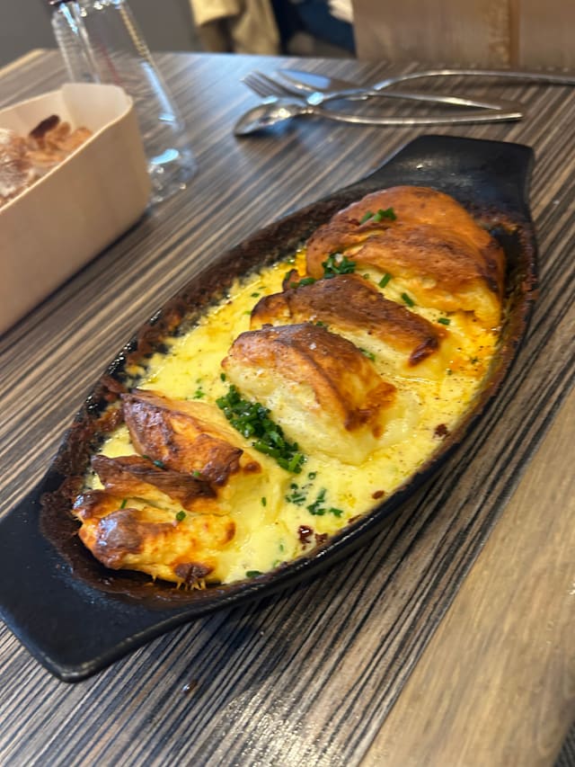 La gratinée de queue de langouste au vin jaune et vieux Comté