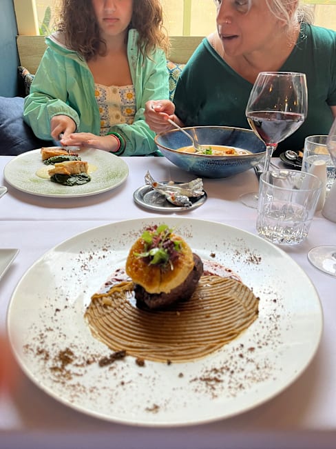 9/10Beautiful decor, plenty of wait staff and delicious food. Prices are fabulous, especially when compared to the restaurants in the US who have raised prices dramatically to make more profits to satisfy corporate greed. The chestnut soup was incredible, the risotto with squid ink was delicious but small and the panna cotta with lemon was very good.