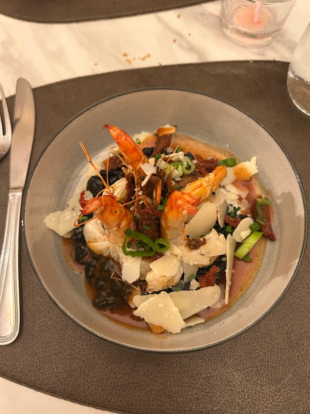8.5/10The restaurant is attached to a nice hotel. The atmosphere is cosy, and calm. We ate under the trees that were nicely illuminated at night. The dining room was very nice too in case of rainy days. The food was very good; not upscale. The prices were a little steep (199€ for 3 persons, appetizer, 3 course menu and a bottle of wine). The ceviche was excellent.