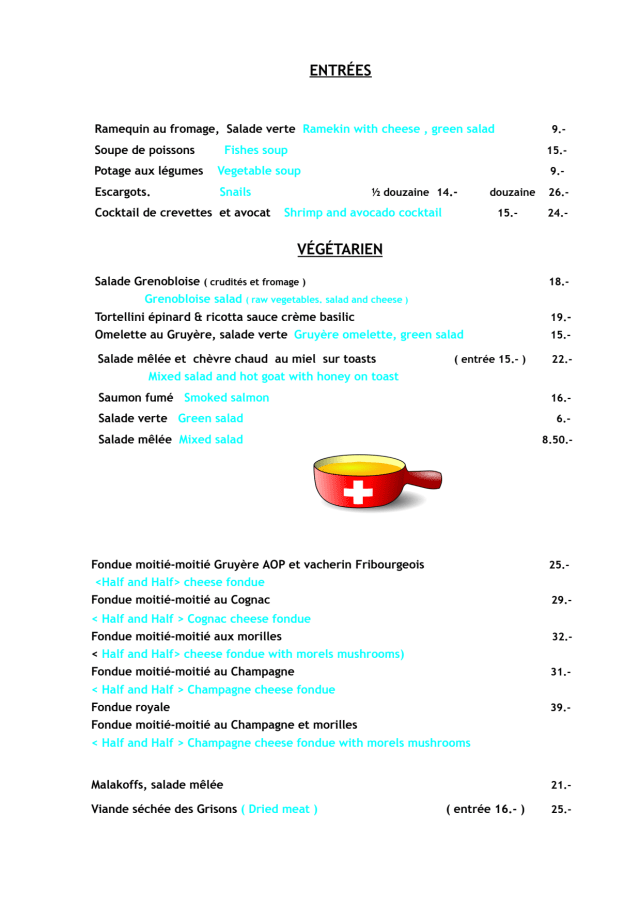 5/10The waiter/cook is friendly, portion size is filling, well located in Geneva. Nevertheless, improving the freshness of the salad, cleanliness/smell of the restaurant and decor would make the visit more worthwhile.