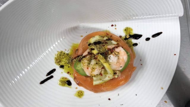 - Millefeuille de la mer (saumon fumé, crevettes, crabe, écrevisses, avocat)