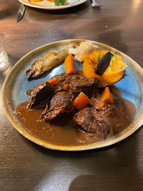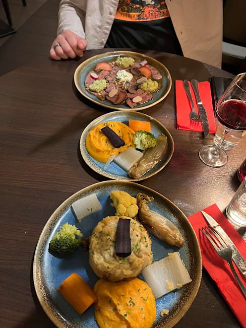 10/10So we got there early enough so that we had the restaurant to ourselves. The two waiters on staff were fun and attentive. We even had to learn what scallops were together (St Jacques I think?) which was hilarious. The food was delicious of course. I had Beef cheeks that were rich and my wife had Lamb Shank roasted with honey and we both loved the other ones plates more. The homemade duck foie grois we had for our first time was paired with fresh bread. It made us want to try it again. But I’m still not sure if I like it (we did bring some back from our trip though) Our bill definitely reflected how much fun we had and I would love to go again.