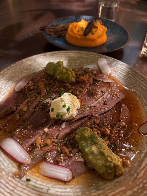8/10Booked easily via Fork with 40% off. We got the fish of the day (salmon) + duck tataki. Both were quite nice but not mind blowing. Both came with the same sides (sweet potato mash and assortment of vegetables).