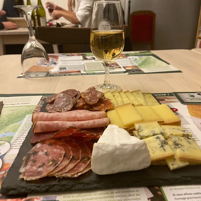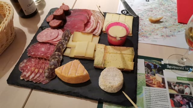 10/10Great location for cheese and charcuterie and really good wine. The theme of the cheese and wine selection is Dombes - an outstanding region in Eastern France. The host was gracious and shared much information about the cheeses and drinks. All in all a great night out