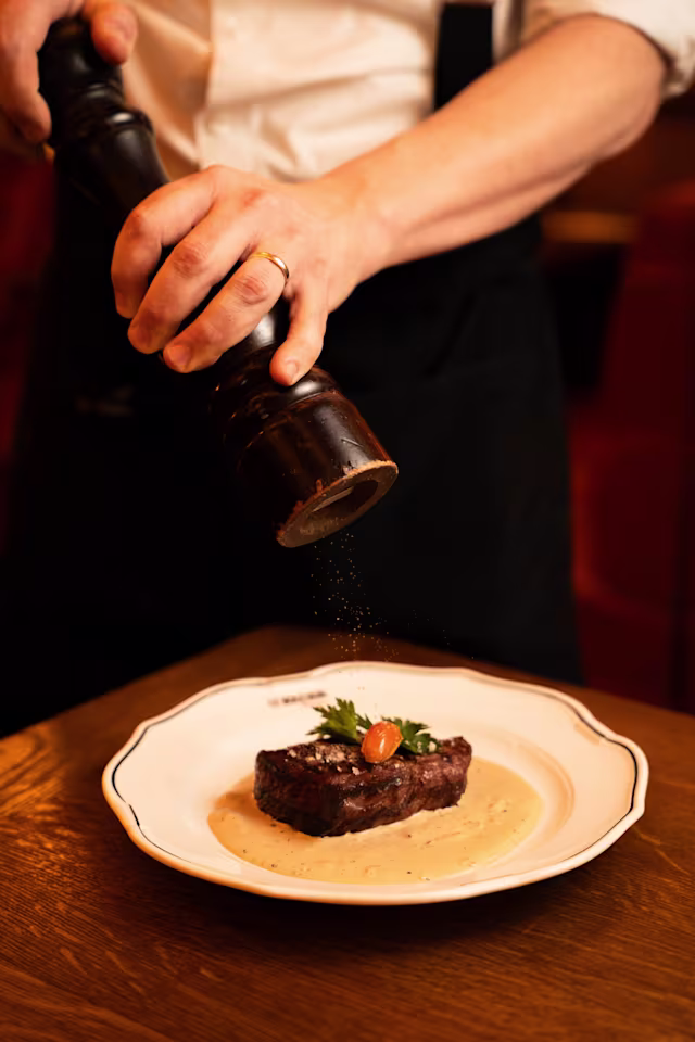 - Notre filet de bœuf 200gr, béarnaise tiède & purée maison