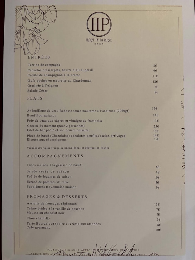 Though my French is not great, the staff made me feel welcome. The food and drinks were very tasty, with lovely presentation. I would recommend this place if you’re in the area. The hotel looks lovely as well.