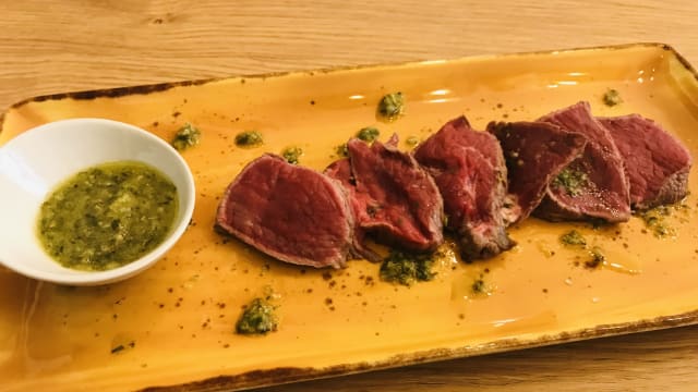Filet de canard fumé au bois d'olivier chimichurri aux plantes des collines