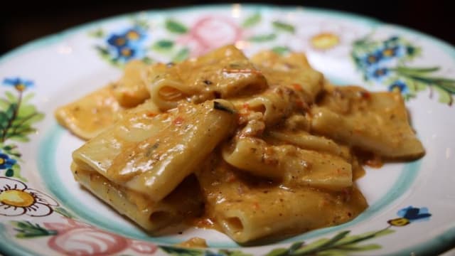 Tipico piatto calabrese con funghi porcini, pachino, n’duja piccante,parmigiano