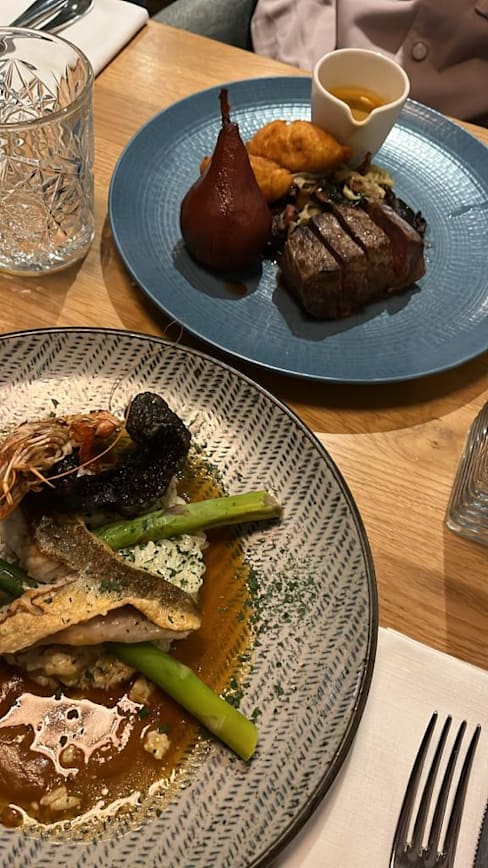 6.5/10Service was slow regardless of having 4+ waiters due to food wait time. Excellent location. Looks very modernized and cozy. The starters were dissapointing. The carpaccio wss overshadowed by a strong tasting sauce thats seemed storebought. Parmesano was dull and light. Beef was ok. Rocette was good. The beef tataki was a small portion but came in an excellent sauce that was freshly made. Looks bland but the beef was ok. Was definitely cooked earlyer and stored cooled. A hint of cooler fresh fish was in my beef. Main courses were small but better then the starters. The duck was the best one we had. Tame duck but a full big breast fillet on a small cake with sauce. Served with asparagus. My guest found the ribeye excellent which was presented sliced and tasted oven roasted. It came atop "a carrot and mashes potato" the deer stew was a letdown. Dry and overcooked. Seasoned in cinnamon to a point that id not recognize deer. Served on a tasteless biscuit. Good bacon on potato and sprouts