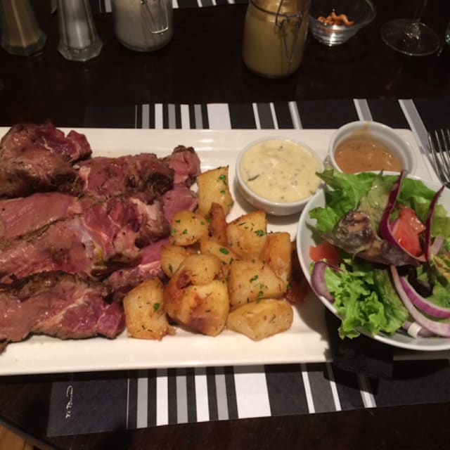 9/10The food was amazing (we had the duck confit and butcher's choice) and outside ambience was very energetic and young but not too crowded. We were seated inside (which was still very nice!) but not sure if us being seated inside was due to availability outside or because we were "discount" patrons with TripAdvisor discount? Although the staff was very kind and attentive they did not speak English at all which was difficult since we don't speak any French. The only reason we give 4/5 stars instead of 5/5 is that we did not see that dessert x2 was required for the 30% discount to be applied to final bill (perhaps I missed this in the fine print? But a reminder would have been much appreciated at start of meal as a warning to what may counter discount from being applied.) I think ordering drinks/wine should suffice even with discount rather than making us spend >$16 on dessert that we had no interest in ordering--but still was all still incredibly delicious nonetheless!