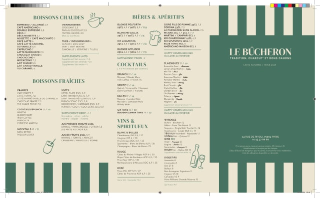 10/10Lunch at La Bucheron 30/8/25 was our first meal after our morning CDG arrival from the Southern Hemisphere. It did not disappoint: friendly, welcoming and English-speaking personnel, efficient service (seating as requested in booking), traditional bistro ambiance and good food of generous proportions.With The Fork's 20% discount, it was also good value. On leaving we were asked to write a review if we were happy with our meal experience but also if we were not, as our waiter said 'we learn from that'. However, we were most happy.