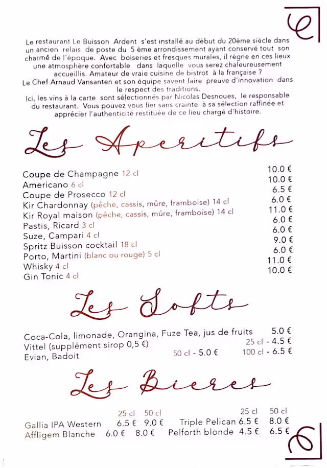 Can I reserve at Le Buisson Ardent right now? How is Le Buisson Ardent rated? Does Le Buisson Ardent have special offers currently? What type of cuisine is served at Le Buisson Ardent? Does Le Buisson Ardent have a terrace? Is Le Buisson Ardent good for families? Is Le Buisson Ardent open on Sundays?