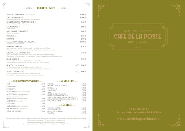 10/10Delicious food, lovely atmosphere, great service. Best café gourmand in the Riviera. Highly recommend any day of the week. Also good value.