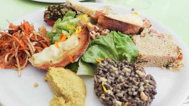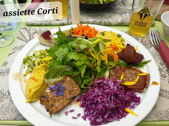 10/10What an enjoyable lunch we had! Set on a beautiful mountainside terrace with amazing views. We were pleasantly surprised with our Corti plate which was brimming with vibrant colour, tastes and textures. Each mouthful was a joy to the palate. It’s rare to see vegan dishes on a menu in France, let alone one with such creativity and inventiveness. This was topped off with friendly and speedy service.