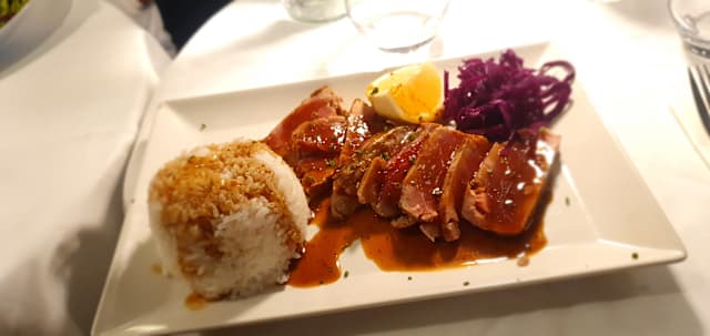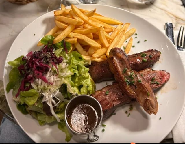 7.5/10The food was pretty good, we ordered a horse steak but it was actually a mince patty so that was strange but the location is very nice.