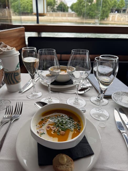 10/10We saw this boat dinner cruise experience featured on The Frenchies’ YouTube vlogs and had to try this experience. This once in a lifetime experience was superb and magical since we celebrated our daughter’s 15th birthday with this amazing dinner! From the moment we stepped on the Calife, we were greeted with excellent hospitality and positive energy. The starters, dinner, wine and desserts were to die for. Highly recommend this beautiful experience for anyone looking for a fine dining experience in the heart of the Seine river. This once in a lifetime adventure will be stored in our core memories forever.