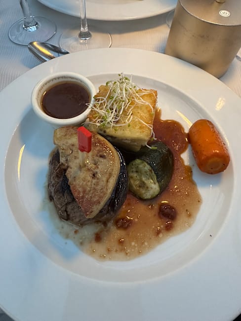 10/10This was a great experience. The food wine and service were of a very high standard, the portions perfectly acceptable for three course meal and of good quality.. The cruise was lovely on a beautiful summers evening and was further improved after dark with the city of Paris all lit up. All aspects of the evening were great and would highly recommend for lovers of top end dining.