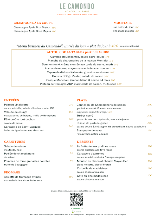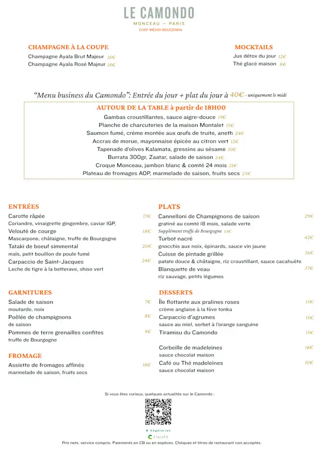 Chère Monsieur Lepercq, Toute l'équipe du Camondo vous remercie pour votre retour ! Nous sommes heureux que vous avez apprécié notre cuisine et le service de notre équipe en salle. Vous souhaitant une belle journée. Manon Restaurant/Bar Le Camondo - Paris 8