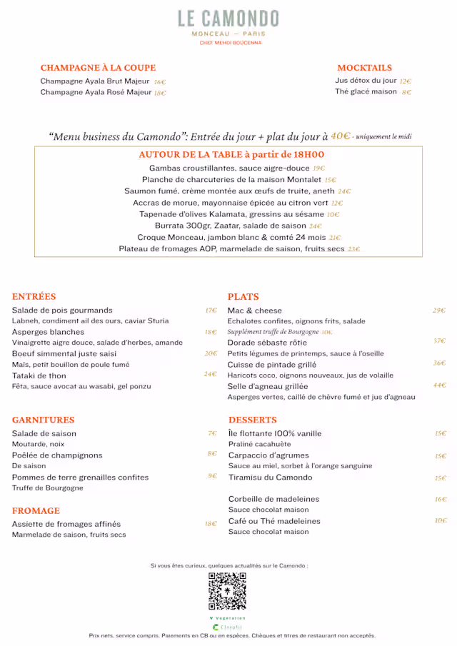 Le CamondoChère Monsieur Lepercq, Toute l'équipe du Camondo vous remercie pour votre retour ! Nous sommes heureux que vous avez apprécié notre cuisine et le service de notre équipe en salle. Vous souhaitant une belle journée. Manon Restaurant/Bar Le Camondo - Paris 8