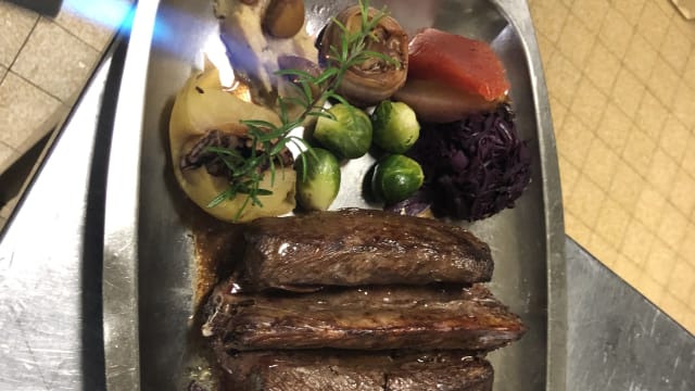 Filet de boeuf flambé aux cognac sauce aux foie gras
