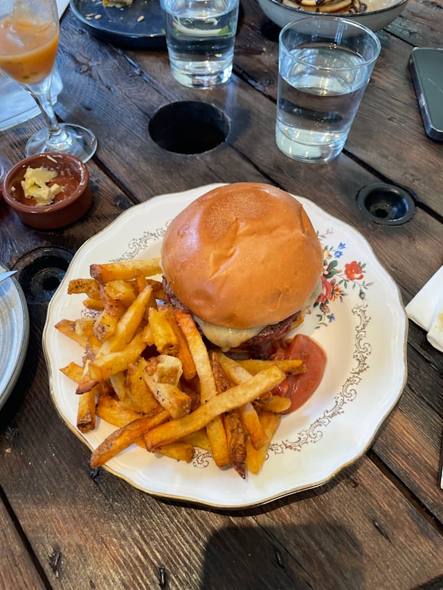 - Un burger, viande tendre, bacon garnitures gourmandes.