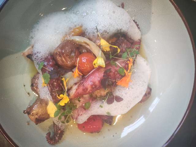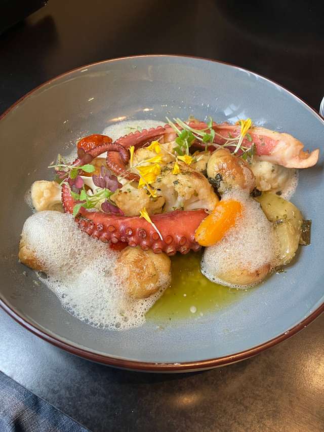 - Poulpe grillé, huile d’olive, ail, pommes de terre.