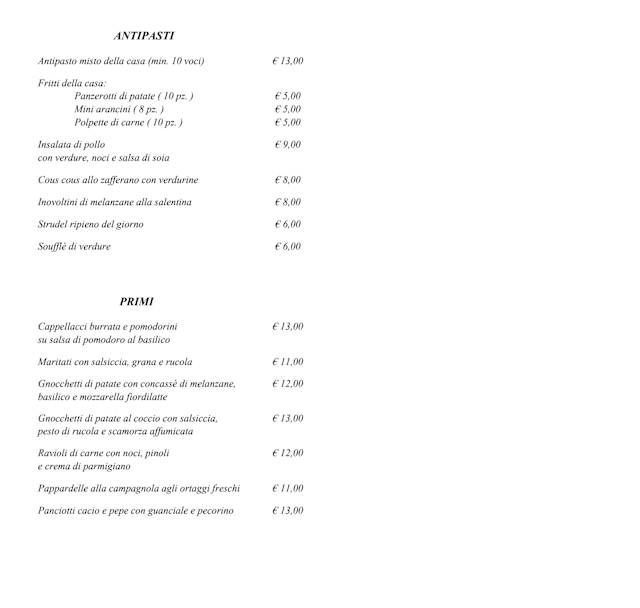 9.5/10I went for lunch and it was so good I returned for dinner. I had the costata di cavallo for lunch and pasta for dinner. Both excellent. You must try Alberto's rose wine...delicious. And, just let Alberto pick the dolce for you. I will return!