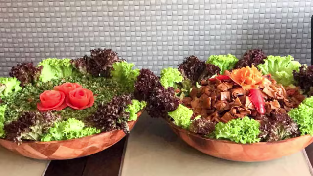 - Tomates, concombres, oignons, poivrons, huile d’olive, laitue, citron