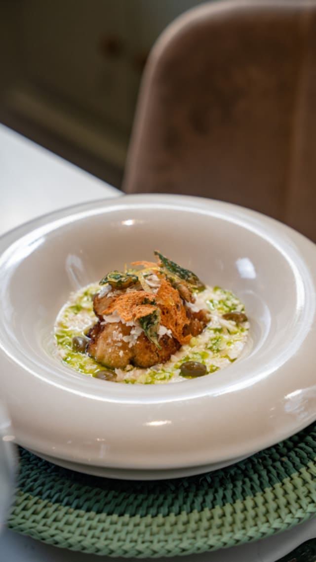 Chou-fleur meunière à la grenobloise, sauce Dubarry au goût de risotto