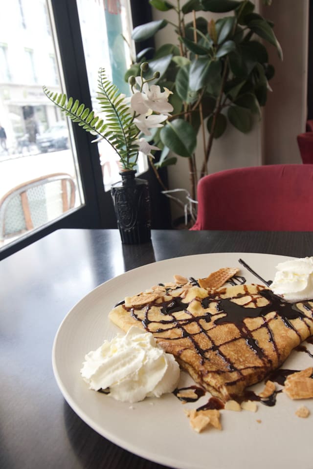 Crepe les glaces, glace rhum raisins, flambee au rhum