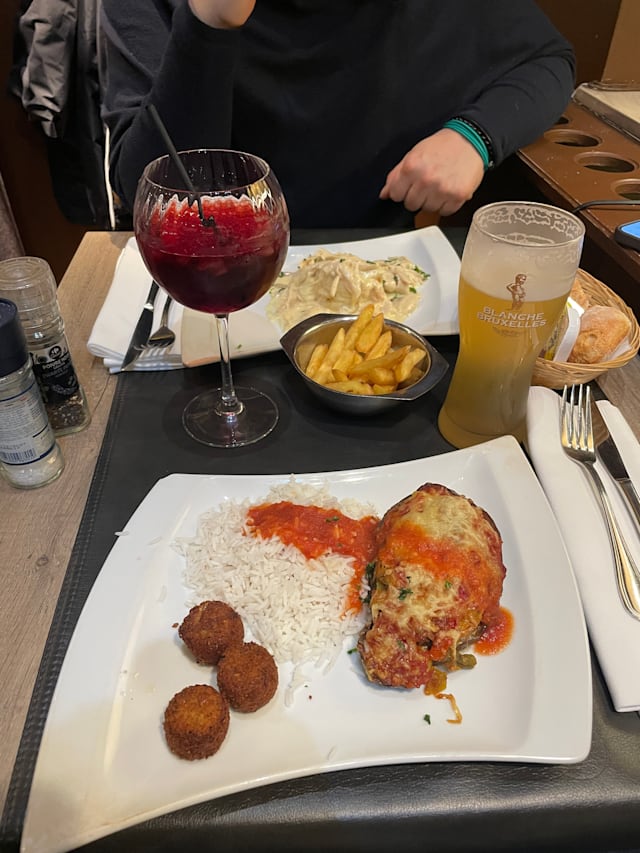 8.5/10The staff and attention to the client. Really appreciated. Food ok but quick to the table which in Brussels isn't something to take for granted.