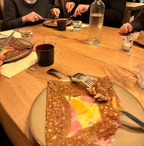 10/10We thought that we would be stressed for our food, only having an 75 minutes to eat, but our group of 7 managed to have 2-3 crepes each. Food was served really fast and it was delicious. Perfect place for a family with lots of gluten intolerant people since the sarrasin crepes could be eaten both for the main meal and for desert. Atmosphere of the restaurant was also top-notch. Very cozy