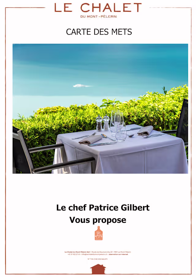 Le Chalet du Mont-PèlerinDear Bernard, Thank you so much for your kind words! We’re delighted that you enjoyed the warm welcome and Jérôme’s service. Happy to hear that the view and our cuisine made a perfect match for you. And yes… In Chasselas we trust! 🍷😉 Looking forward to welcoming you again soon! L'équipe du Chalet du Mont Pèlerin.