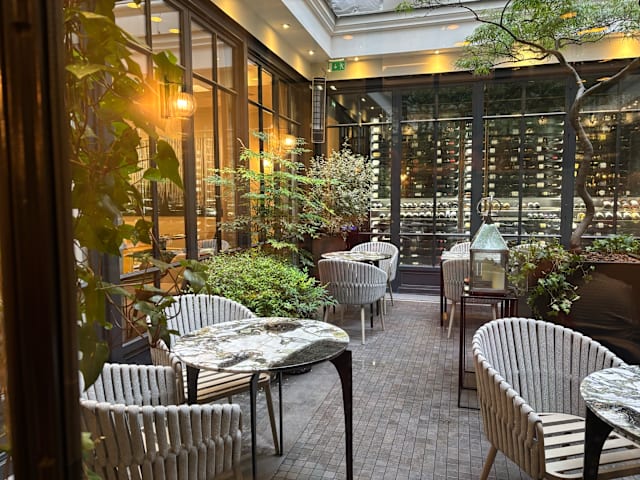 9/10It was such a beautiful space/ hotel and we were seated in the outdoor area. We had such a pleasant lunch experience and the set menu was good except they did not ask for the temperature of my filet of beef and I wanted it a bit more rare. The dessert/ pastries though were amazing.