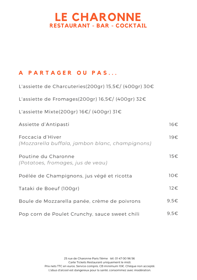 Restaurants around Le Charonne