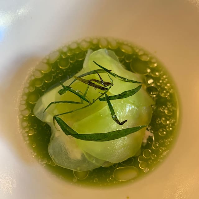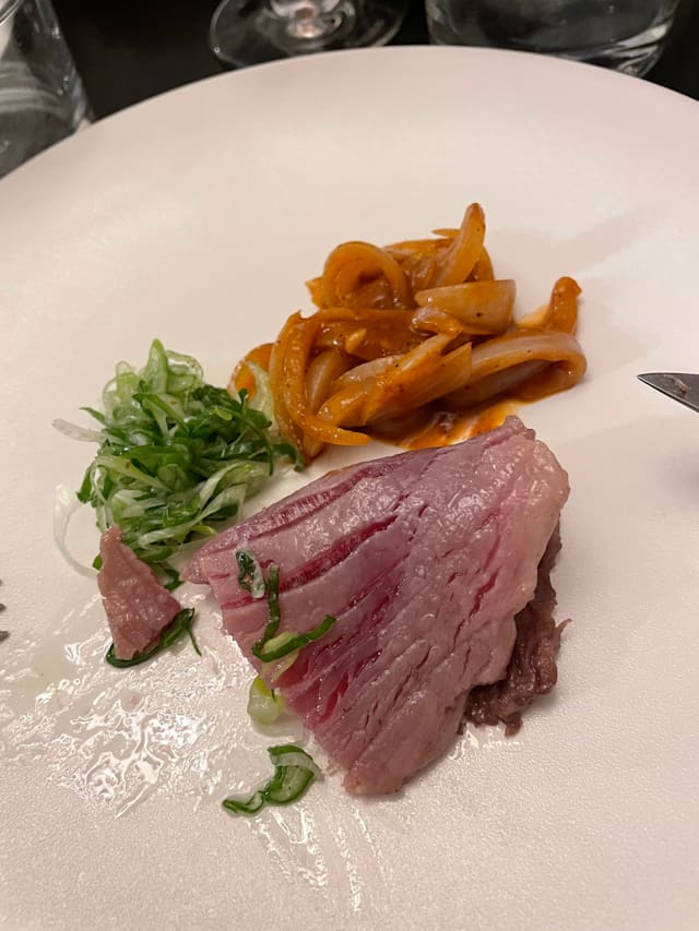 The food was not good! Things were too cold, or too warm, or needed more salt, or were just bad. The fish dish and the cheese puffs were good but ordinary. And the pacing was terrible, we were there for 3.5 hours, a lot of it waiting around, and the wine pairings were small and rarely on time.