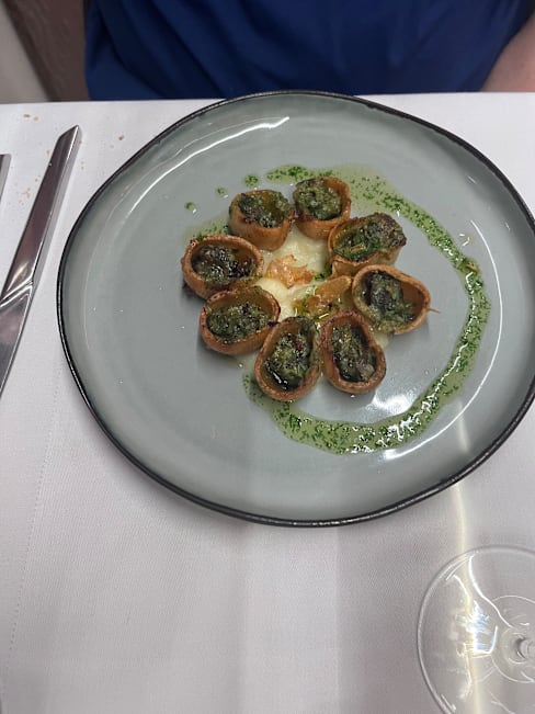 10/10+2A beautiful meal, we opted for the 38/42 euro set menu. Each course was beautifully presented and in addition we were served amouse bouche and an appertiser. Starters were snails served in a crispy edible shell & perfectly cooked poached eggs in a mushroom & ham sauce. We both opted for the Bourgogne Beef which was so tender & delicious, served with potato. Deserts were Crème Brulee. My husband also had the cheese board. Coffee was served with petit fours Service was professional & attentive. Servers were lovely. Highly recommend.
