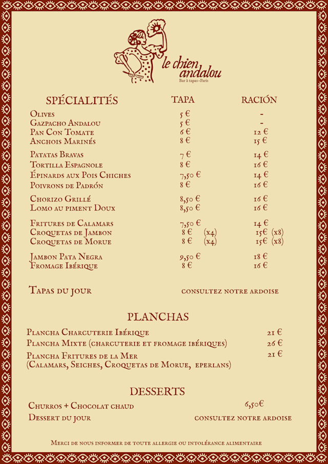 10/10Visiting Paris from Los Angeles and wanted to relive my trip to Spain ten years ago. The jamon and cheese was wonderful. They offered a really nice beer sans alcohol. The churros and chocolate was hot crunch soft and perfect! Spanish music was playing and service was fantastic! There is indoor and outdoor seating. I easily made a reservation online. Thank you for a delightful memory!