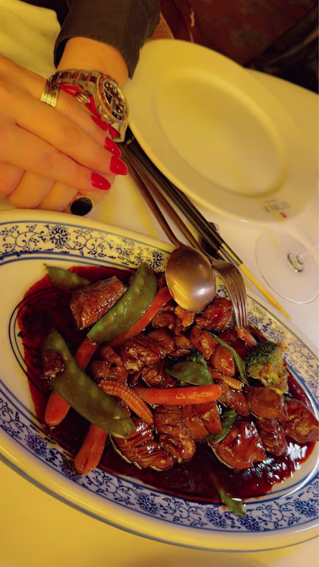 - Al estilo le chinois, con aroma a madera frutal, suflado y crujiente. Acompañado de salsa hoisin a la miel de flores, pepino fresco cortado en bastones, puerro argenta y crepes hechos a mano.
