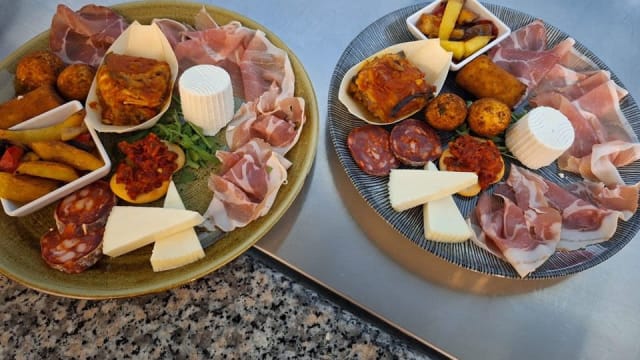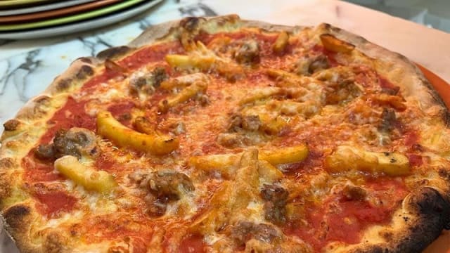 Mozzarella, porchetta di ariccia, patate al forno, salsa barbecue