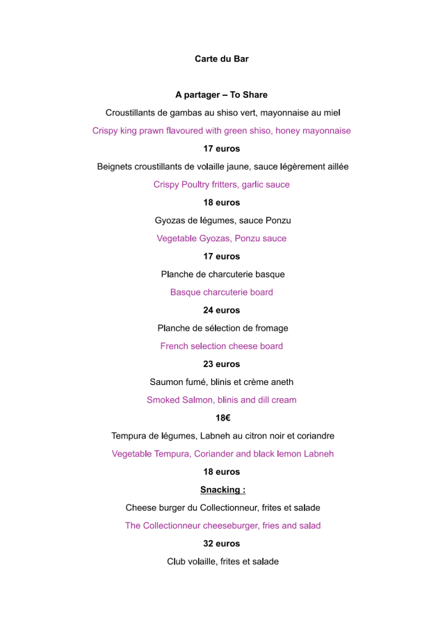 Le Collectionneur - Bar is identified as offering french cuisine.