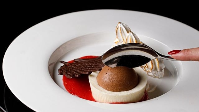 Tortino di cioccolato caldo con meringhe e salsa di arancia
