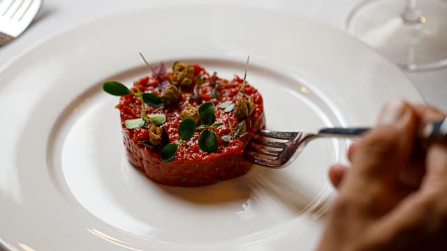 Battuta di filetto di manzo con rafano e tuorlo marinato