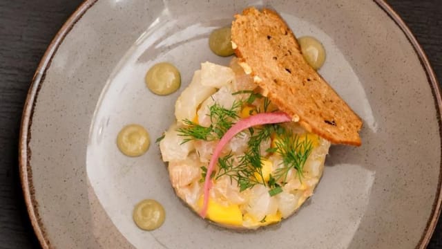 - purée et chips de céleri, sauce ponzu et herbes fraîches
