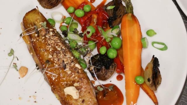 - jus de viande, légumes de saison, champignons poêlés, échalotes confites
