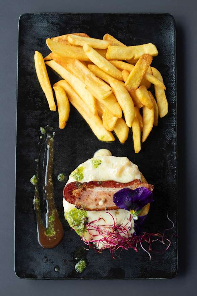 - Rösti,duxelle champignons déglacées au vin d’alsace, steack haché (150g env), fromage raclette, cornichons, oignons caramélisés.