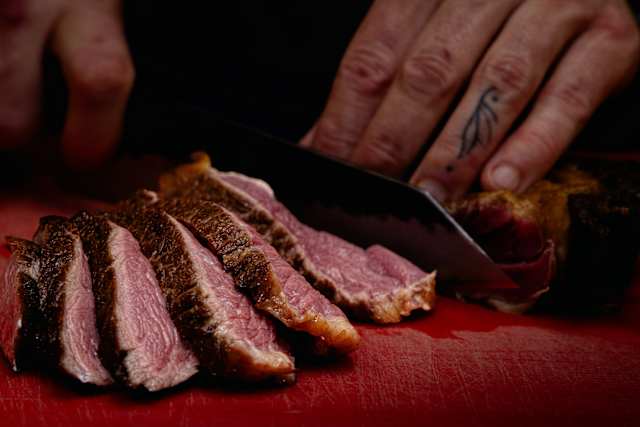 - Entrecôte de boeuf, jus de viande, béarnaise, gnudi
