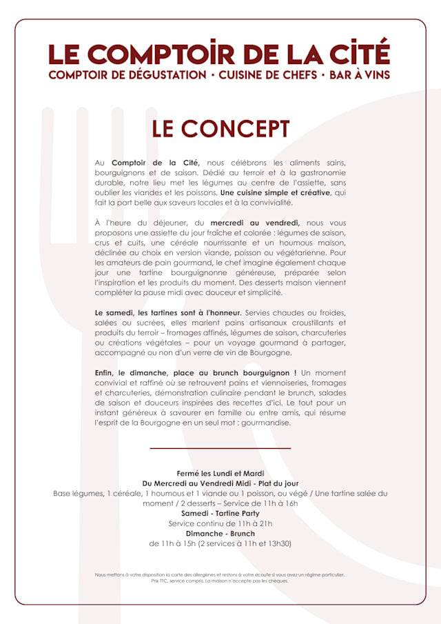 Yes, Le Comptoir De La Cité has availability on TheFork currently. Do not hesitate, reserve your table on TheFork!